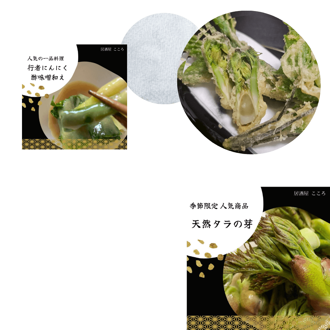 居酒屋こころでは、その時期に採れる山菜を提供しています。